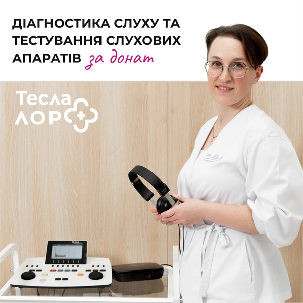 Комплексна діагностика слуху та тестування слухових апаратів за донат у ТЕСЛА ЛОР+